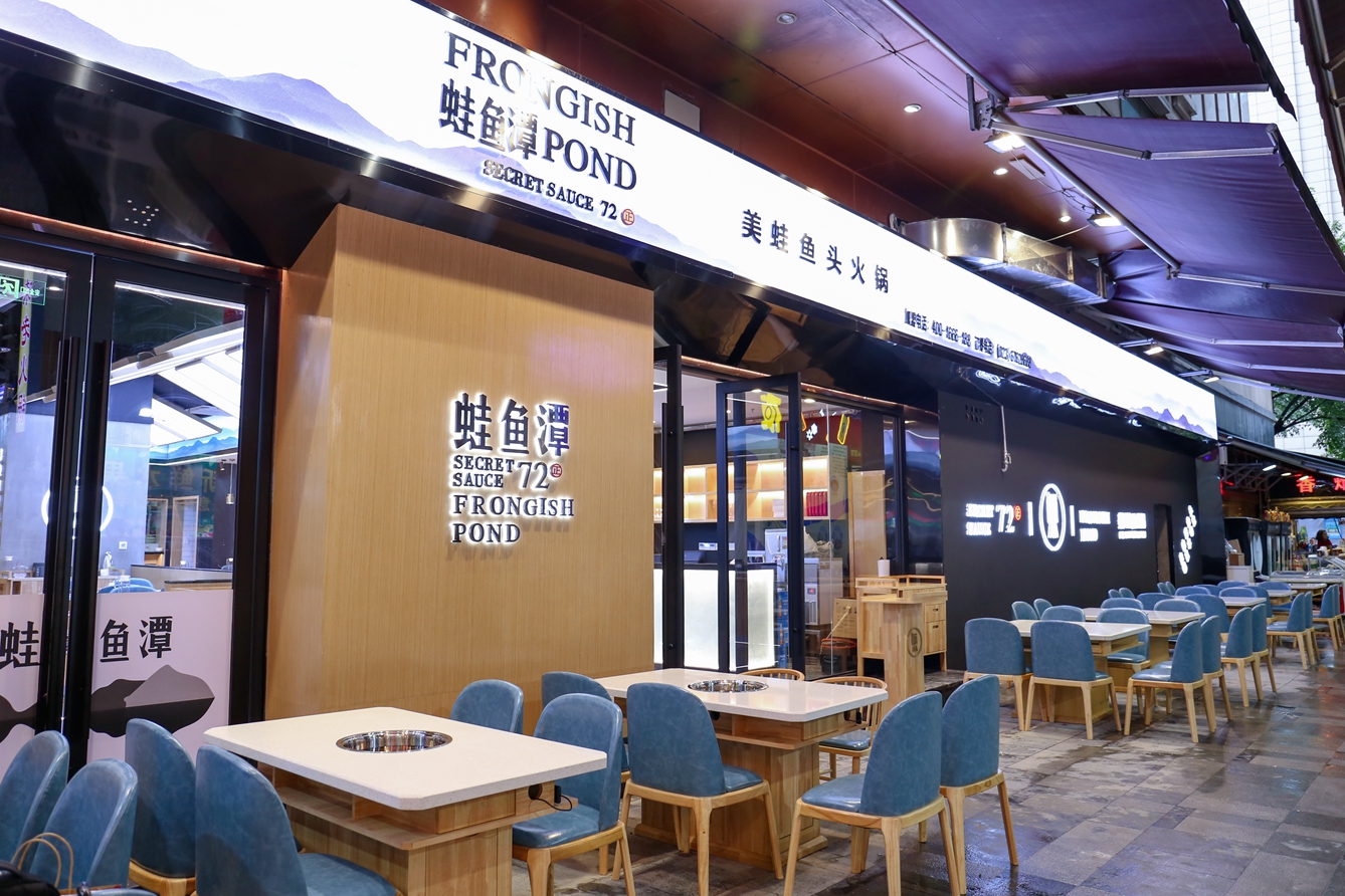 蛙鱼潭的底料是由72种天然香料药材秘制而成,产品以美蛙鱼头为主打,现杀现煮,纯天然绿色无添加,麻辣鲜香,爽口嫩滑。适合各个年龄阶段的消费者,老少皆宜。